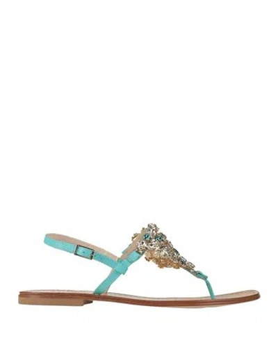 Woman Thong Sandal Turquoise Size 8 Calfskin In Blue