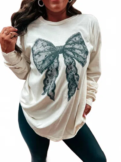 Coquette Lace Bow Long Sleeve Graphic Tee In Ivory In Multi