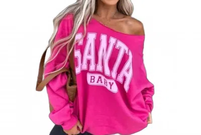 Women's Santa Baby Off Shoulder Sweatshirt In Hot Pink