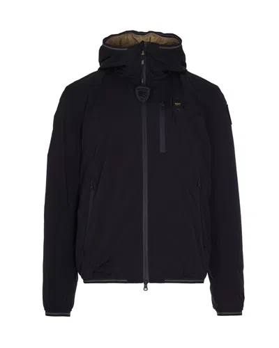 Chevron-quilted Hooded Jacket In Blue
