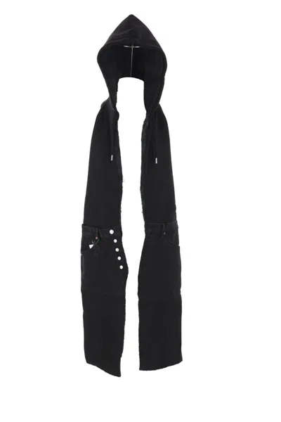 Hooded Scarf In Black+black