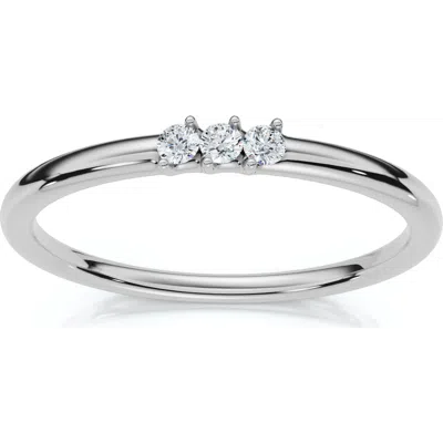 Delicate Diamond 3-stone Minimalist Anniversary Wedding Ring 14k Gold Lab Grown In Silver