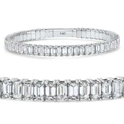 16ct Emerald Diamond Tennis Flexible Bangle Bracelet 14k White Gold Lab Grown