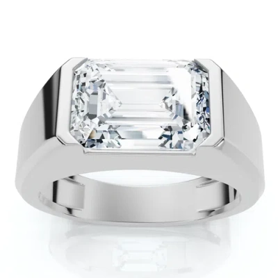 Emerald Cut Half Bezel Diamond Ring 14k Gold Or Pt Lab Grown In Silver