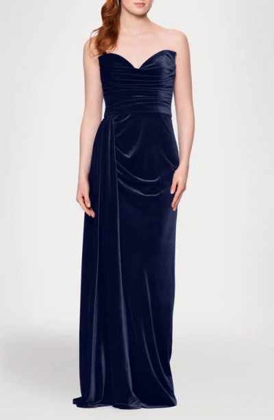 Drape Strapless Velvet Gown In Blue