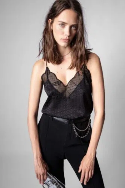 Pre-owned 2022 Zadig & Voltaire Christy Jac Camisole Top Tank Size M Silk In Black