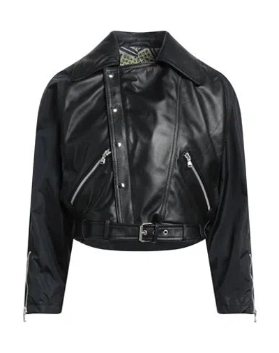 Woman Jacket Black Size 10 Ovine Leather, Wool, Acrylic, Elastane