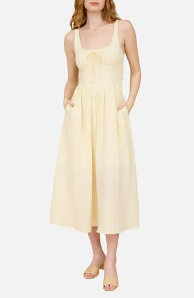 Ruched Detail Scoop Neck Midi Dress In Natural In White
