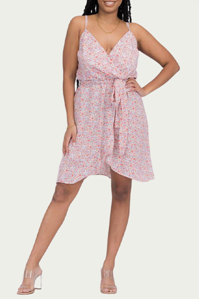 Floral-print Surplice Jersey Mini Dress In Pink