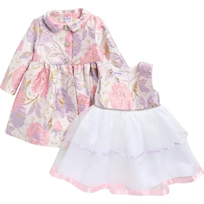 Kids' Brocade Party Dress & Coat Set In Purple