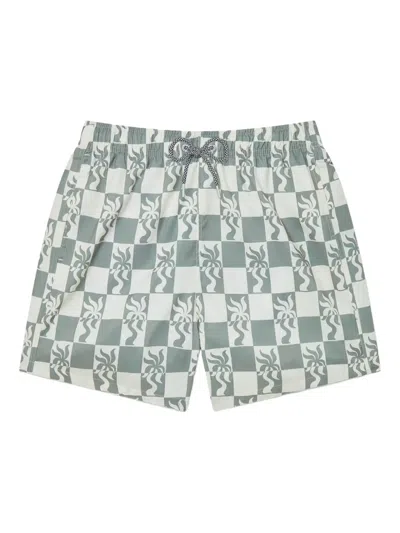 Nico Checkerboard Swim Trunks In Green/cream