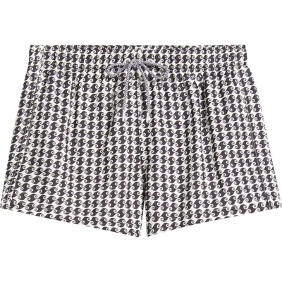 Checkerboard Print Swim Trunks In Multi
