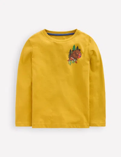 Kids' Front & Back Printed T Shirt Oil Yellow Mountain Animals