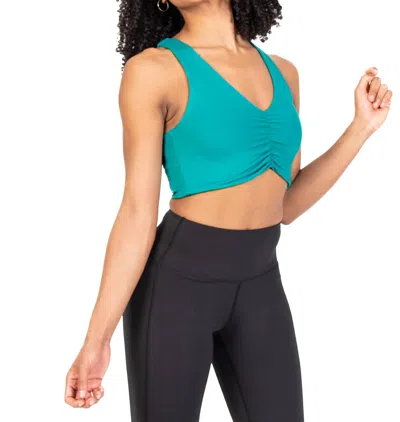 Recycled Poly Shirred Front Racerback Sports Bra In Teal In Blue