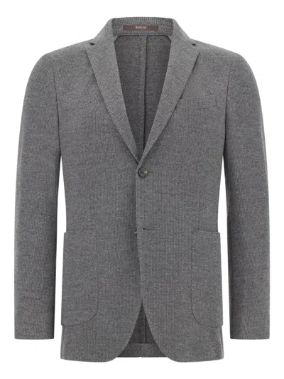Ens Grey Micro-texture Cotton-wool Blend Jersey Blazer In Gray