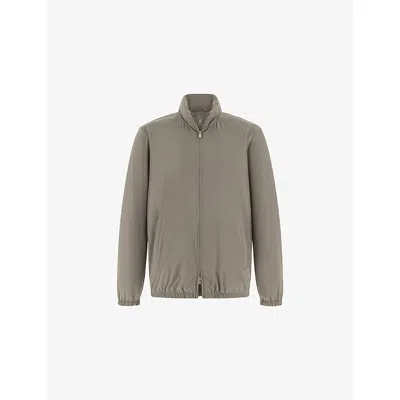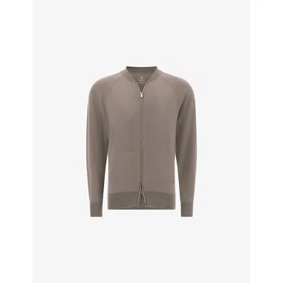 Mens Taupe Fine-knit Regular-fit Merino-wool Bomber Jacket In Brown