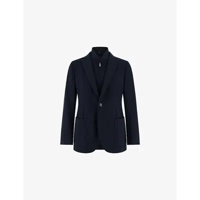 Mens Navy Blue Regular-fit Wool-blend Sweatshirt Jacket