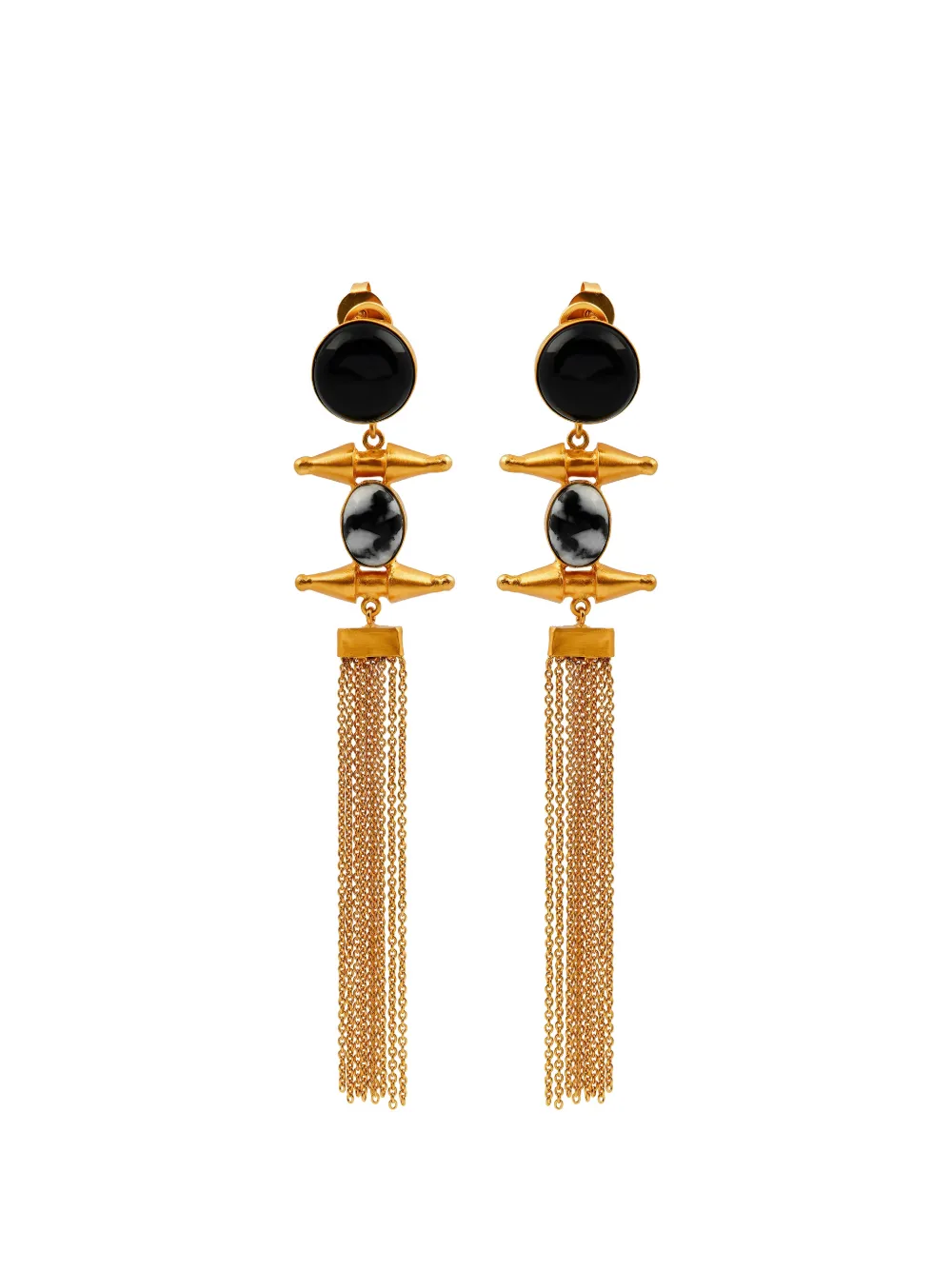 Onyx Pendant Earrings In Gold