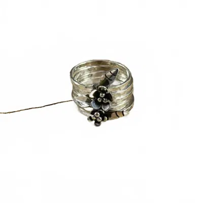Women's Stacked Band Ring With Flower Details In Silver