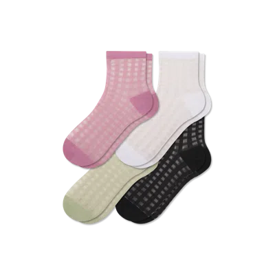 Sheer Gingham Quarter Sock 4-pack In Mauve Sage Mix