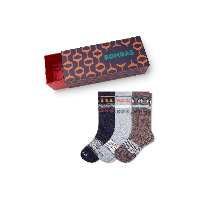 Holiday Calf Sock 3-pack Gift Box In Grey Navy Mix