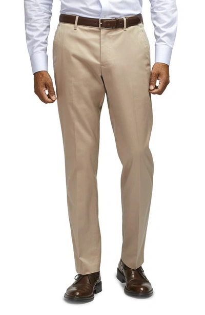 Flat Front Brushed Cotton Herringbone Chinos In Neutral