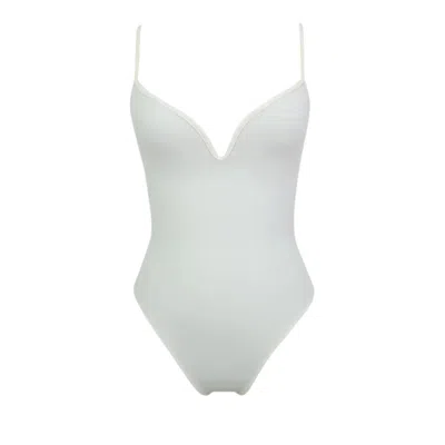 Women's White Deep V-neck One-piece Swimsuit, Ivory Cream