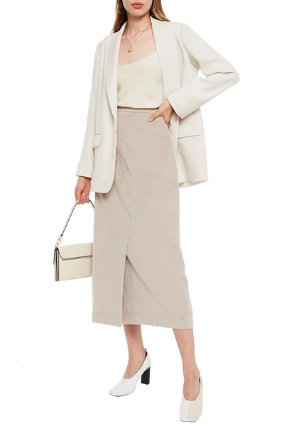 Nadia Pleated Cotton-corduroy Midi Skirt In Neutrals