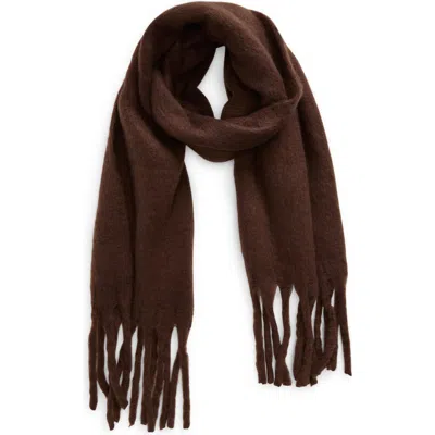 Fringe Blanket Scarf In Brown