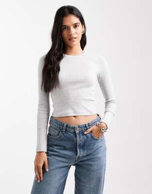 Cotton Long Sleeve T-shirt With Lettuce Hem In Gray