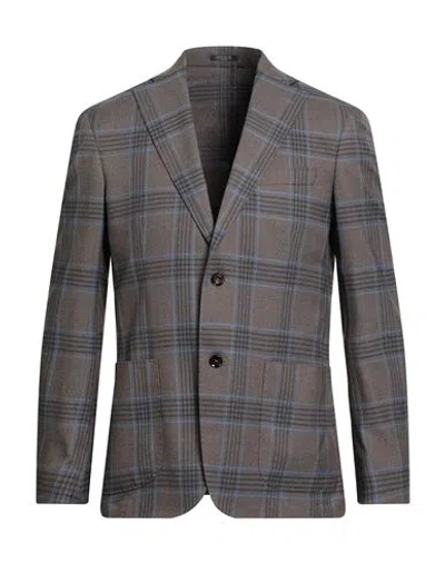 Man Blazer Khaki Size 40 Polyester, Viscose, Elastane In Brown