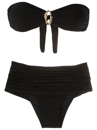 Ruched-detail Bikini In Black