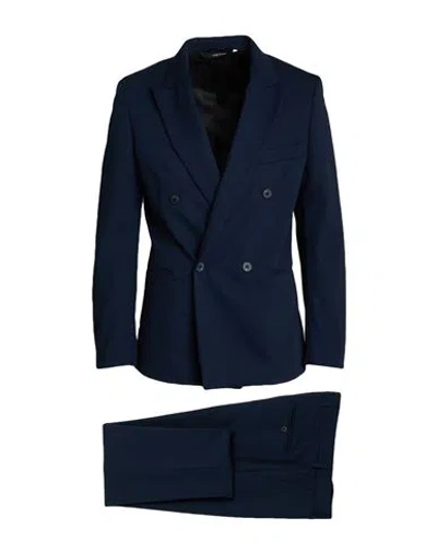 Man Suit Navy Size 40 Virgin Wool In Blue
