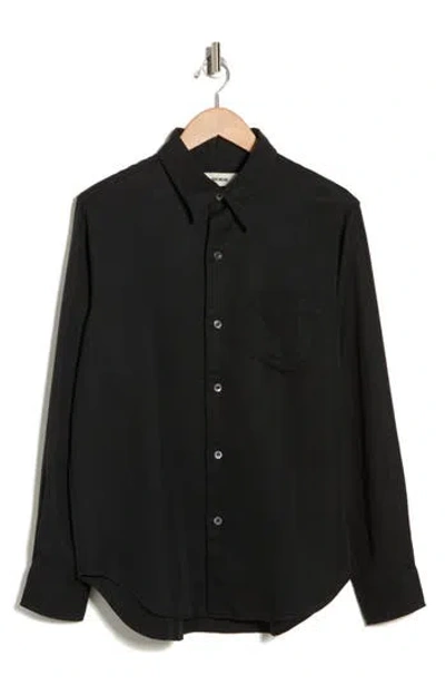 Breeze Short Sleeve Linen & Cotton Button-up Shirt In Black