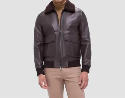 Leather Zip Up Aviator Jacket In Truffle In Gray