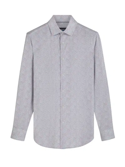 Men Geometric Print Sport Shirt In Air Blue In Gray