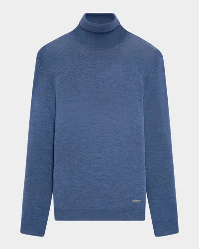 Men's Premium Merino Wool Turtleneck Sweater In Denim