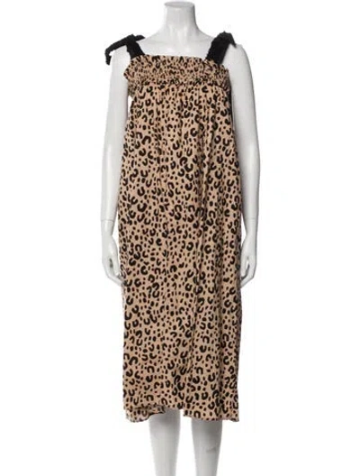 Pre-owned Animal Print Long Dress In Brown