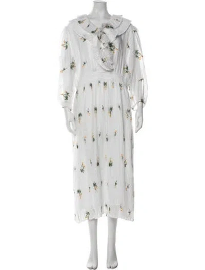 Pre-owned Floral Print Midi Length Dress In White