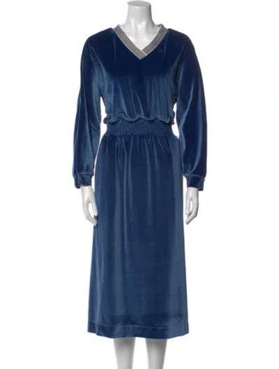 Pre-owned V-neck Midi Length Dress In Blue