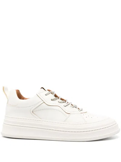 Low-profile White Leather Sneakers With Vibram Sole In Multi