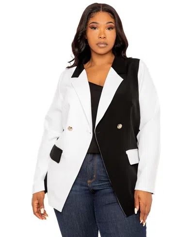 Plus Size Contrast Double Breasted Blazer In Black