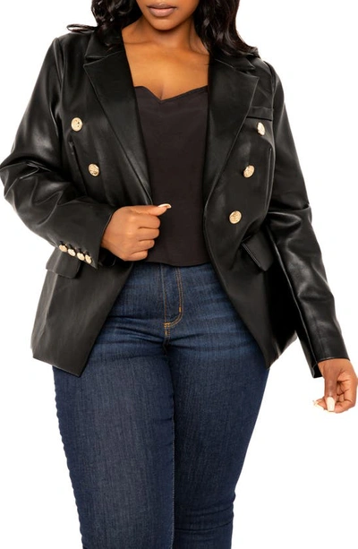 Faux Leather Double Breasted Blazer In Black