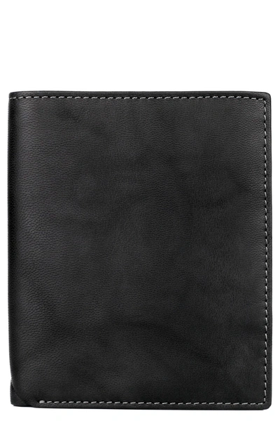 Men's Rfid Distressed Vegan Leather Bifold Wallet In Black