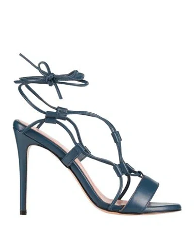 Woman Sandals Navy Size 7.5 Leather In Blue