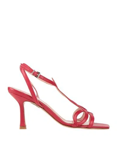 Woman Sandals Fuchsia Size 6.5 Leather In Pink