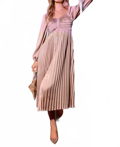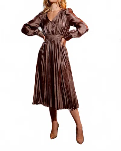 Satin Pleated Midi Dress In Mocha In Brown