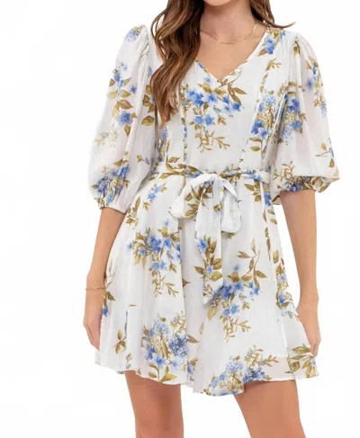 Floral Peasant Mini Dress In Blue Floral