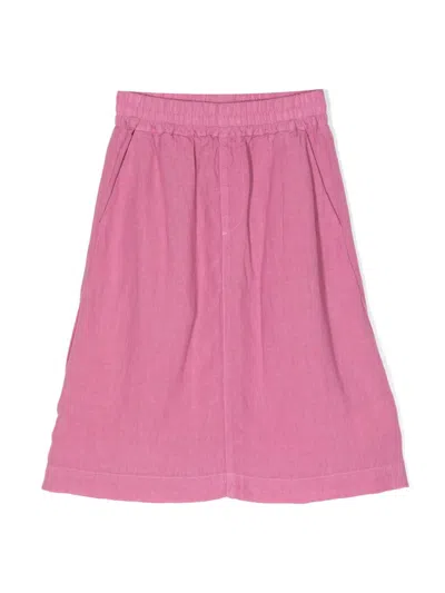 Kids' Elasticated-waist Linen Skirt In 粉色