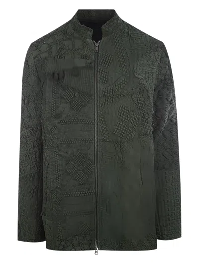 Embroidered-patchwork Cotton Shirt Jacket In Neutrals